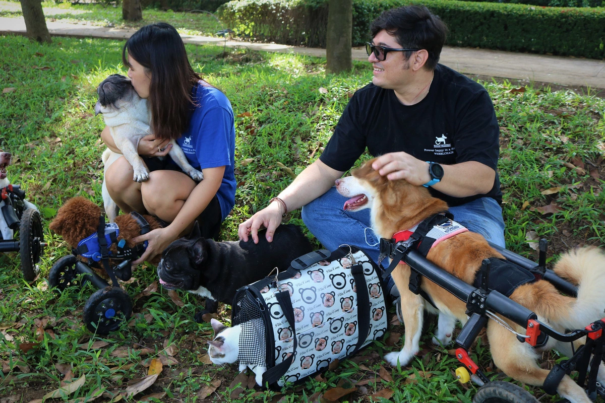 Ca Chim, un chien sauvé par Forever Wheelchair, est l'une des histoires les plus marquantes. Abandonné dans la rue après avoir perdu ses deux pattes, Ca Chim était d'abord très craintif et refusait toute approche. Grâce à l'amour et aux soins d'Oscar et Thư, il a peu à peu surmonté ses peurs et a appris à utiliser le fauteuil roulant comme de nouvelles jambes, vivant désormais avec confiance et bonheur. L'histoire de Ca Chim et de nombreux autres chiens et chats handicapés a été ravivée par Forever Wheelchair, qui leur offre une nouvelle vie grâce aux fauteuils roulants, témoignant ainsi d'un amour inconditionnel.