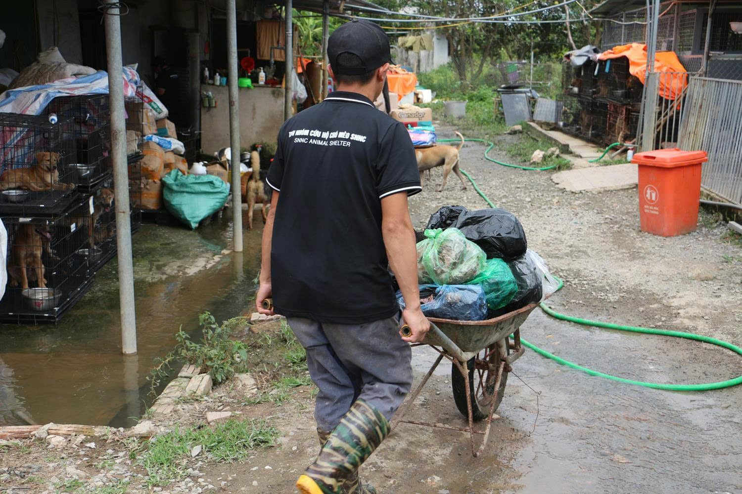 Despite facing significant financial difficulties, the members of SNNC begin their work every day at 7:30 AM. Their tasks range from cleaning, preparing food, and caring for the health of the dogs and cats to taking them for walks and giving them medicated baths for fungal infections. Caring for the pets at the station is not easy, as many of them have suffered from both physical and psychological trauma. However, with great love and dedication, Quang and the volunteers continue to persevere in this important work.