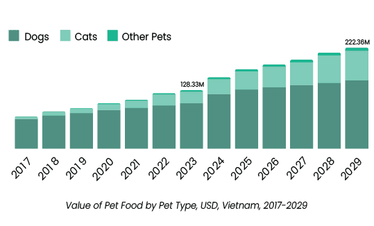 As of 2024, Vietnam is home to around 17 million dogs and cats, with urban pet ownership on the rise—especially among young professionals and modern families in major cities like Ho Chi Minh City. This growing trend is fueling robust demand for pet food and care products, unlocking tremendous opportunities for market expansion.